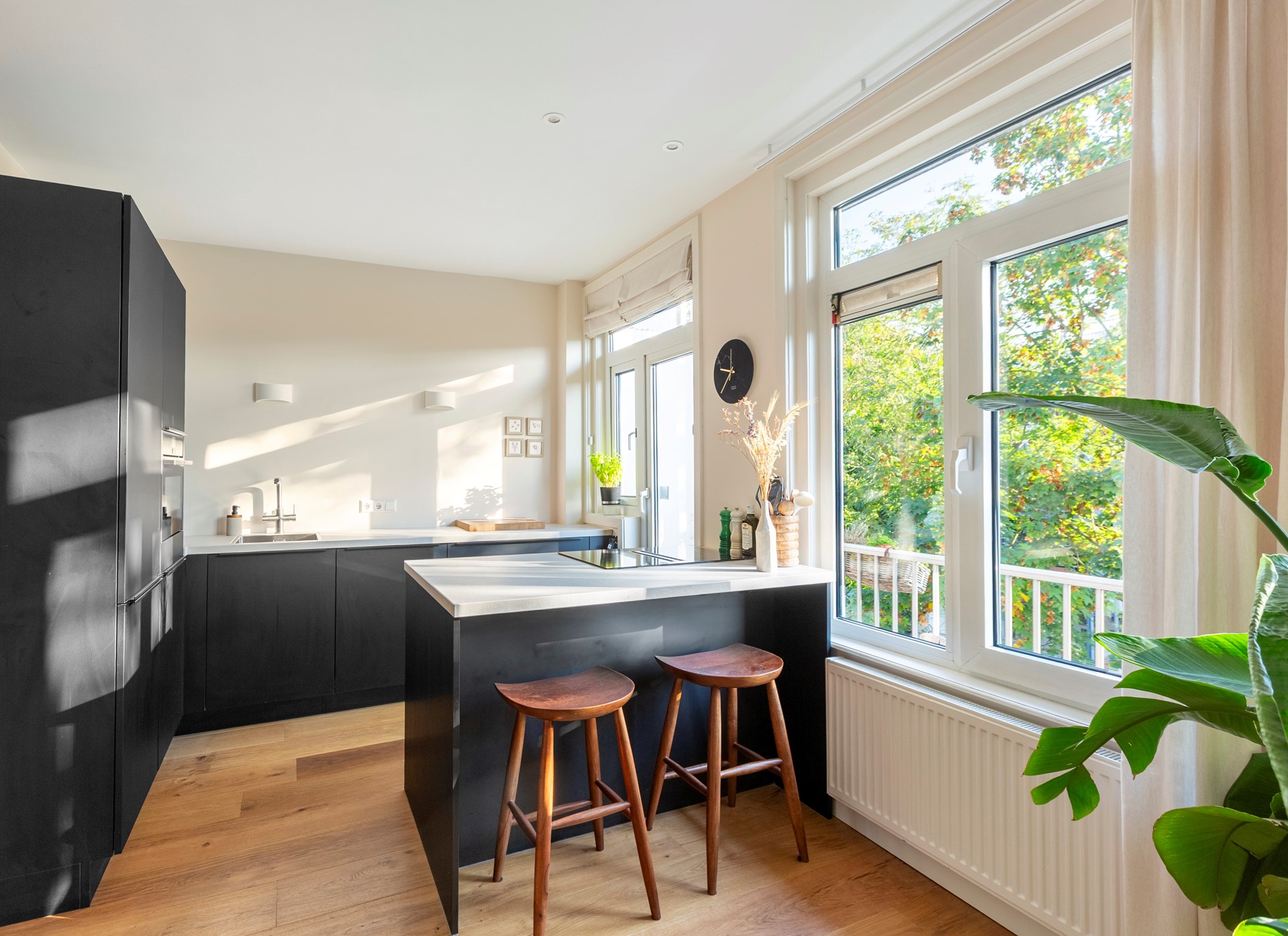 Aansluitend aan de eetkamer bevindt zich de prachtige moderne eilandkeuken, die van alle gemakken is voorzien zoals een Cooker en NEFF stoombakoven. De keuken biedt toegang tot het balkon aan de achterzijde van de woning.