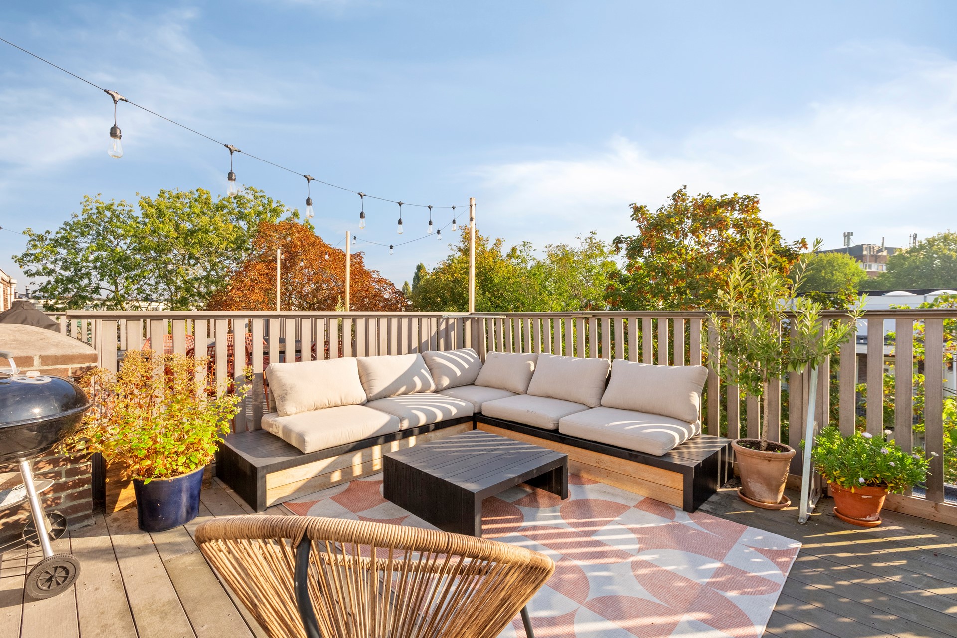Het absolute hoogtepunt van deze verdieping is het grote dakterras aan de achterzijde waar je de hele dag kunt ontspannen in de zon. Met een oppervlakte van ruim 23m² biedt dit een heerlijke plek om te bbq’en met vrienden genietende van het uitzicht over de groene omgeving.